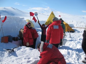 The idea is to train all those going out in the field about how to survive. You know, dig survival trenches, start a stove, operate a HF radio, risk management theory, and a white-out scenario (Bucket heads). Joining me was our mountain guide instructor and nine other students: 3 scientist grantees, 2 janitors, 1 IT instructor, 2 firefighters, and 1 kitchen staff.