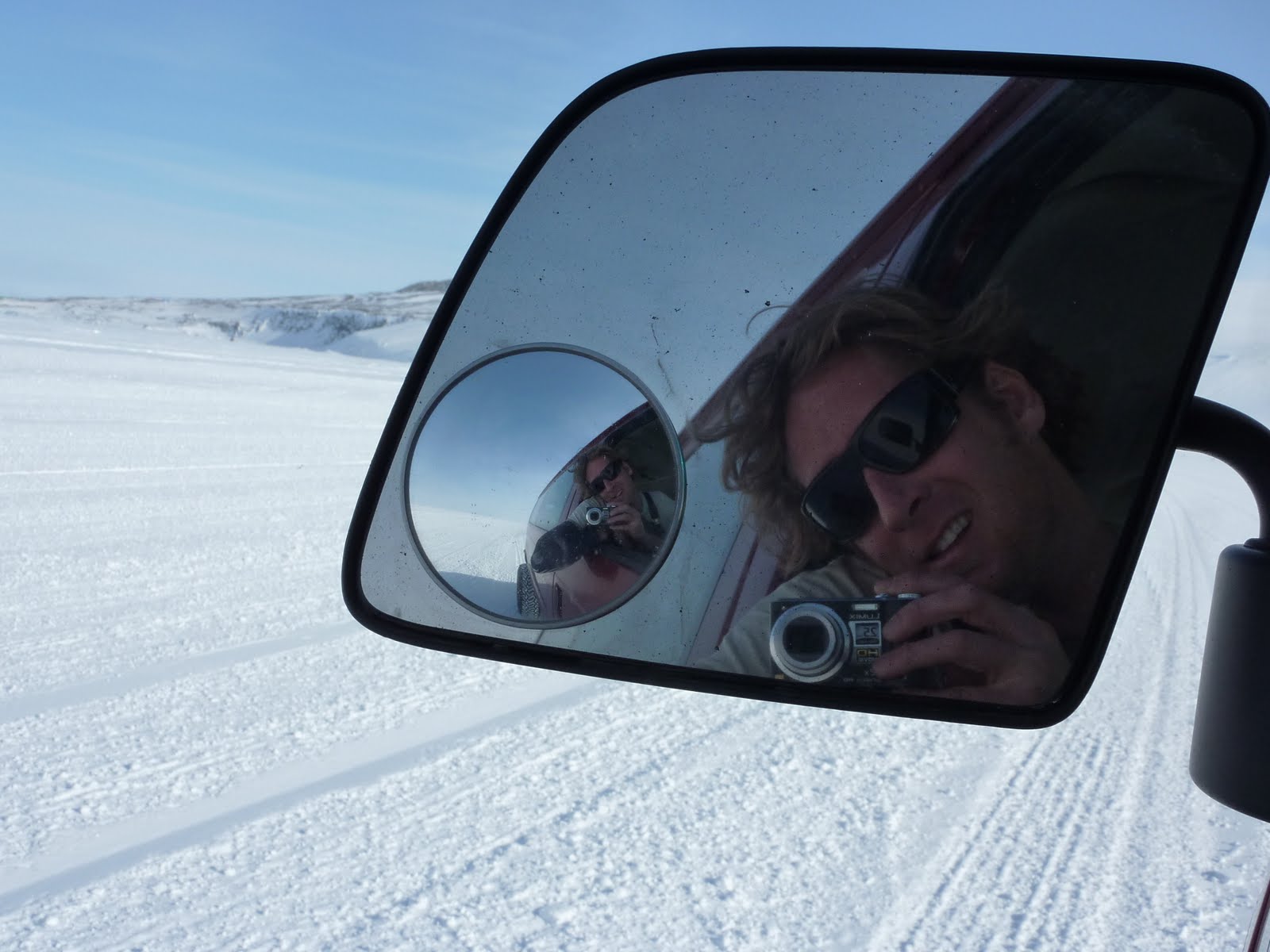 The road out to the airfield is a different story. From town we drive down to the beach (used in the loosest sense of the term); this is where the transition is. This is where it gets gnarly with huge cracks several feet wide and potholes with unknown depths that have been known to have seal heads pop out. And its just another 13 miles out to Pegasus airfield. Fortunately this is mostly all on the permanent ice shelf.