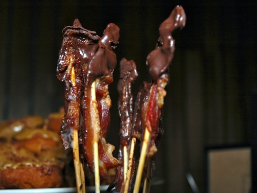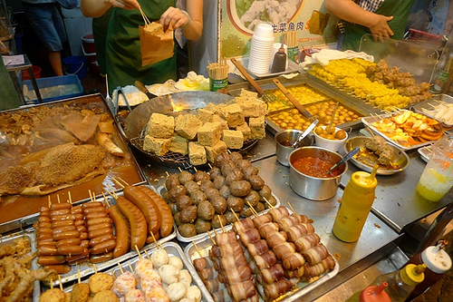 Years ago I noticed a universal human trait: we all love to put stuff on sticks, grill/roast/boil/steam it and eat it. Typically this involves meat of all types but is also extended to tofu, vegetables, marshmallows, fruit and chocolate. From Boy Scouts in Indiana making ‘Smores over a campfire to chicken intestines delicately folded and piercing a skewer at a street market in the Philippines, you will find some variation of Stuff On Skewers no matter where you go in this world.